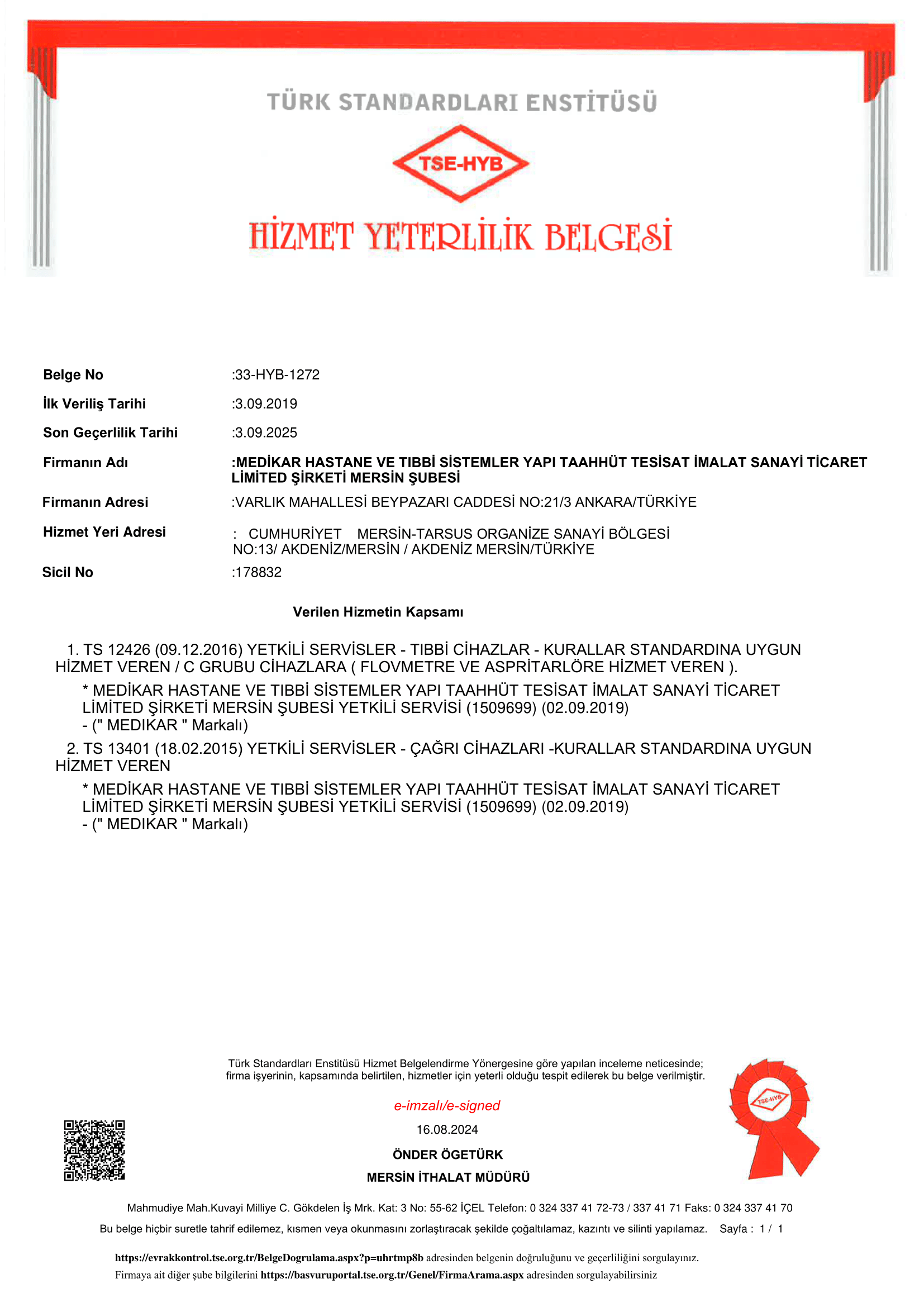✯ Extension Letter, Medikar’ın CE belgesi yerine 2028 yılına kadar kullanılacak olup, şirketimizin yüksek kalite standartlarına bağlılığını kanıtlamaktadır.